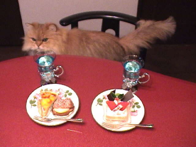 はまぐり: 「ボクはこの、ノエルと書いてあるショートケーキにしようかな。クリスマス限定ケーキだね?シャンメリーはいらないよ。」 |