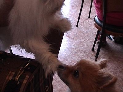 大きなポメ「くんくん。体は小さいくせに、顔と態度がデカイな。」