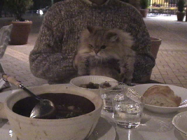 2001年3月3日撮影 グランベリーモール QUEEN ALICE CAFEにて ちょっと寒いが、外でディナー。 さすがに、外で食事をしている人はいなかった。 シャガール「ちょっと、マヌケだな。」 |