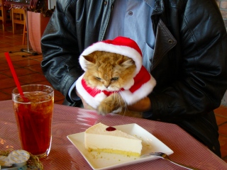 モネ「サンタさんになるのよね! ところで、このお店、店内禁煙になったんだ。良かった、良かった」 |