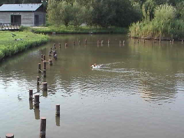 2000年8月 大きな池があって、鴨がいるんだ。 お友達のワンちゃん達もたくさん散歩に来るよ。 ジョギングのおじさんもいるけど、まぁ、どうでも良いね。 |