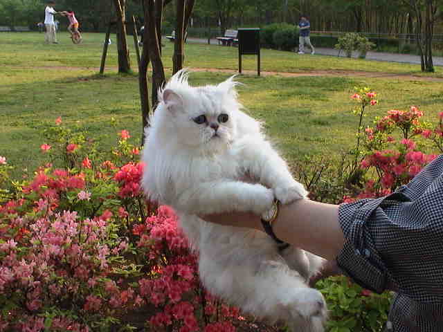 2003年4月27日 晴れ ブッキー「桜の花は散ったけれどサツキの花は、今が見ごろ。一年中美しいワタシはブッキー。」 |