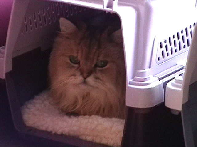 全然似ていないけど、ボクとモネの息子、シャガールです。 2度目の旅だが、キャリーバッグの中が落ち着くようだ。 |