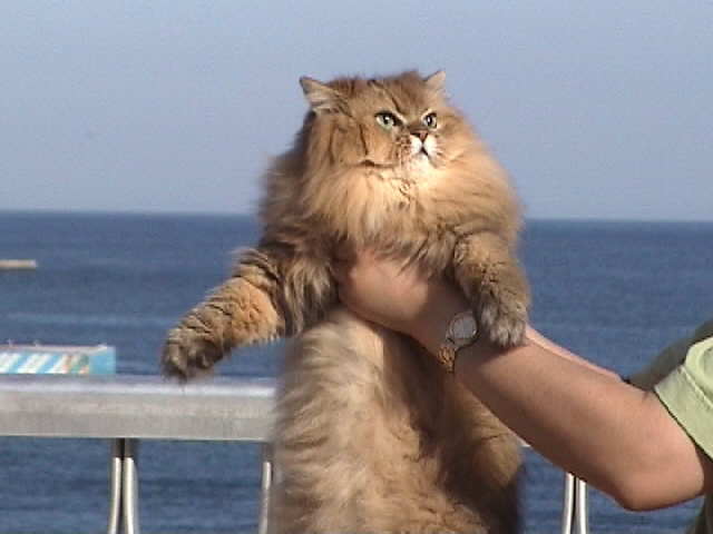 ルソー「サンビーチをバックにポーズをとってみるぞ。今日はいい天気だ。おととし、カンちゃんと一緒に、熱海の旅館に泊まったっけ。あの時は落ち着かなかったなぁ。今日は静かなお宿で良かったよ。」 |