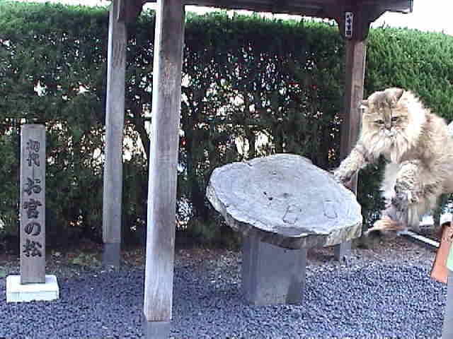 ルソー「これは”初代・お宮の松”でございまーす。現在、”二代目お宮の松”は具合が悪くて、再生中らしいぞ。養生に3年もかかるんだって。早く良くなってね!それはそうと、今日はもう暑いから、早くクーラーの効いたお宿に戻ろうよ!」 |