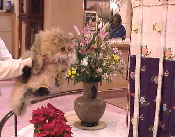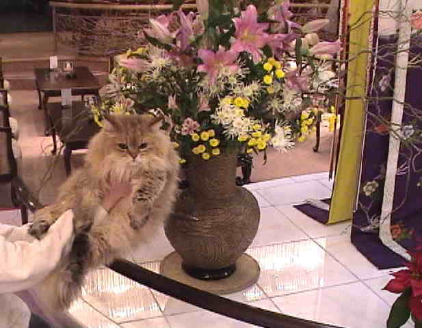 シャガール「では、ボクが館内を御案内します。まずは、エントランスから。着物とお花が飾ってあります。」 |