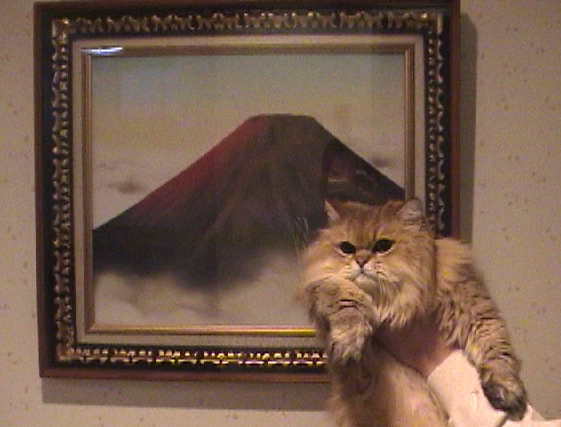 エレベーターを降りたところで、”赤富士”と記念撮影。 シャガール「シャガールの絵じゃないところがミソだな。」 |