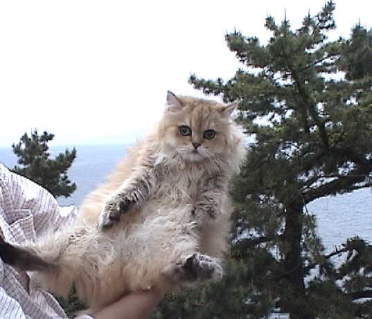 2001年4月22日(日) 曇り ここは、南国ムードいっぱいの温室。 ルソー「ちょっと暑いぞ。」 大きなサボテンに囲まれ、緊張気味のルソーです。 |