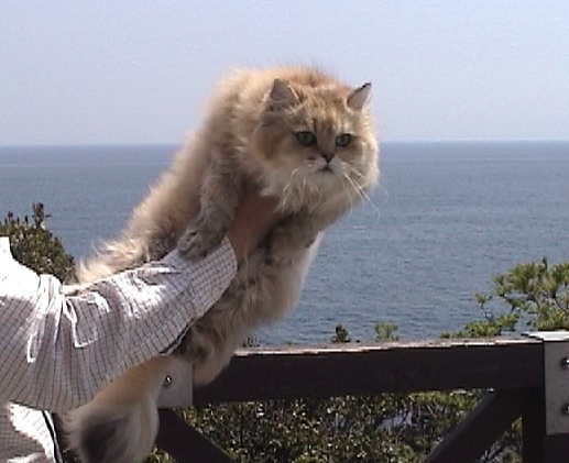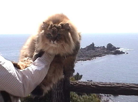 ルソー「後ろに見えるのが真鶴半島の最先端”三ツ石”だよ。」