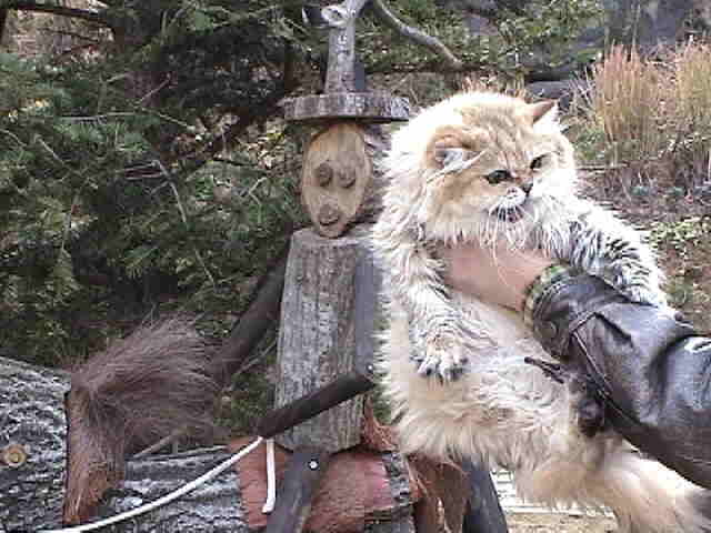なかなかユニークな、馬に乗った騎士の像。 木で作られています。 アングル「いやぁ〜。寒いからキャリーバッグから出たくない!アググのワンピース、持って来て〜。」 |