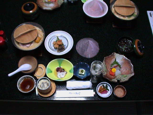夕食タイム。ちょっと寂しいボリュームと品数。でも、おいしい。何を隠そう、今回は特別企画のスペシャルデー。 |