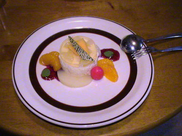 しかし、デザートの洋梨ムースも付いているし、お腹いっぱいの夕食タイムでした。 |