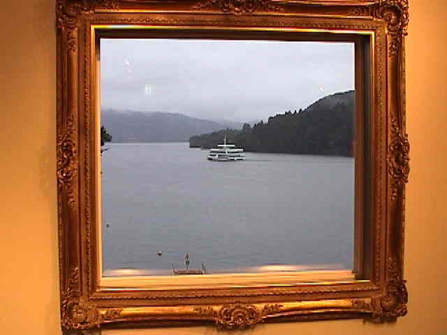 これは、額で縁取られた窓。 芦ノ湖の風景が絵になっています。 |