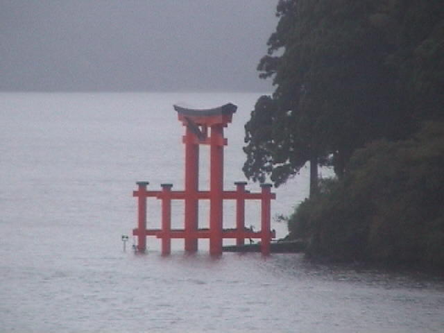 2002年9月26日(金) 雨 今日は、朝からあいにくの雨。 芦ノ湖にそびえ立つ、箱根神社の鳥居でも眺めて、我慢しよう。 |