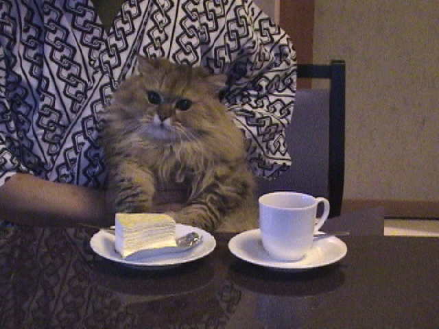 ルソー「おかえり〜。 心配したぞ。さぁ、食事の前に、ティータイムもやっておこう!」 ケーキセットは、お部屋でいただきます。 |