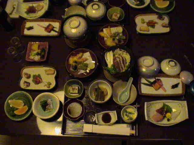 夕食タイム。 ボリュームはないけど、ご飯がおいしい。 |