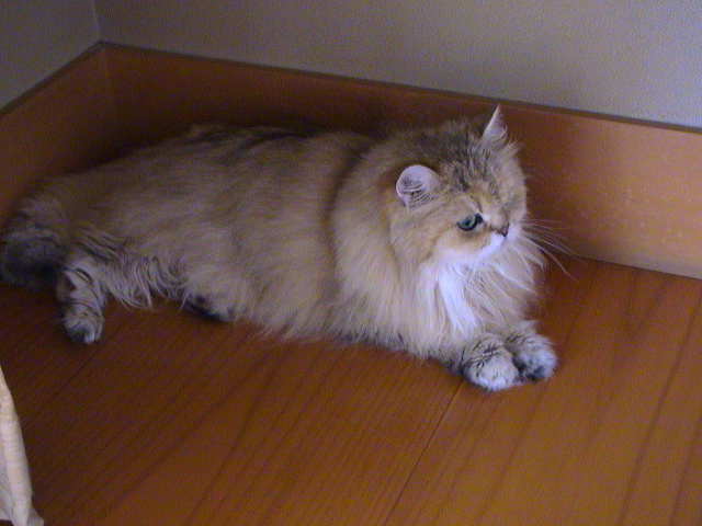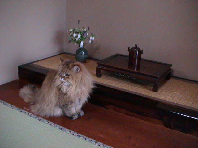 2003年6月1日(日) くもり ルソー「お部屋は12畳+4.5畳。ゆったりくつろげそうだ。3階建ての純和風建築で、源氏山公園がよく見えるよ。」 |