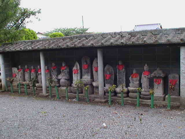 ルソー「よし。真偽のほどは、お地蔵さんたちに聞いてみよう。 ・・・えっ?お久し振りですって?ボクたち、初めてここに来たんだけど。 なになに、墓参りする時は、花ぐらい持って来いって?失礼しました。」 |