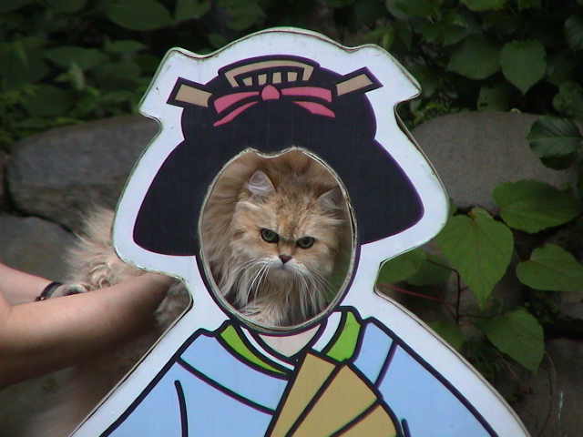 あやめ御前広場にて モネ「あら?あやめがいっぱい咲いてる所じゃなかったの? あやめ公園と間違えて来ちゃったのね。ここは、あやめ御前を奉った広場。幽玄の世界の入口。」 |