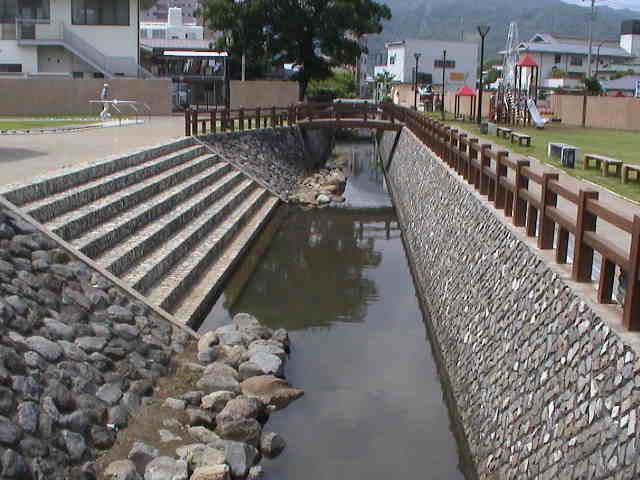 2003年6月2日(月)晴れ 99年にオープンした公園で、入場自由。駐車場もあるので、ドライブ休憩には持ってこです。 川には、大きな鯉がたくさん泳いでいました。 |