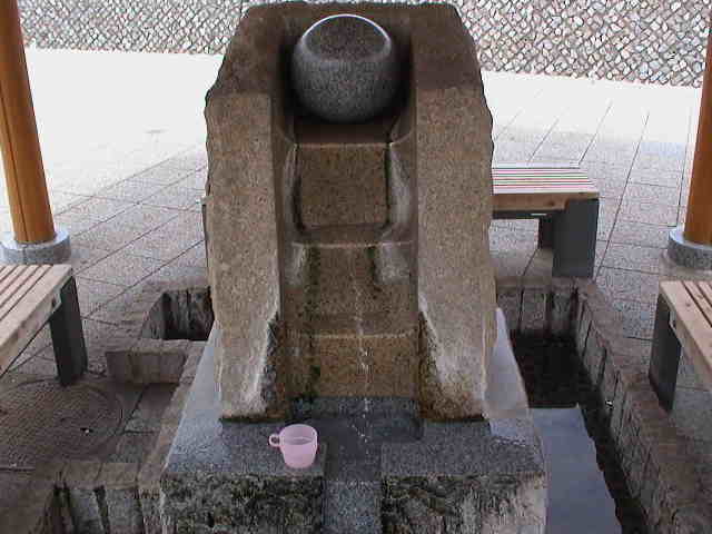 足場でリラックス・・・したかったが、お湯がチョロチョロで、足を浸す気分ではなかった。ガックリ。 飲泉所は2ヶ所あり、お湯の持ち帰りもOKだが、熱すぎて、ペットボトルに入れる気がしなかった。 |