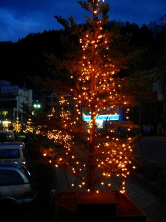 12月24日(金) 夕方 河口湖畔を彩るクリスマスツリーのイルミネーション。 今年は、ここでクリスマスを祝います。 |