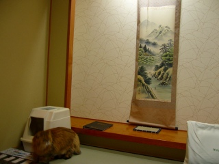 ルソー「トイレはこのあたりに設置して・・・ 掛軸の前のお花は、早々に撤去したのか。倒したら大変だもんね」 |