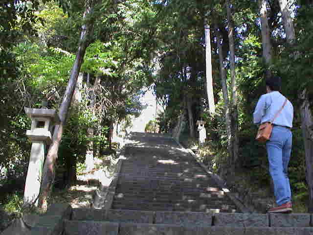 約800段ある参道。 ルソー「ちょっと大変だなぁ。ボクは歩かないからいいけど、転ばないでよね。この先に、役小角が祀られているよ。修験道の霊場だったんだね」 |