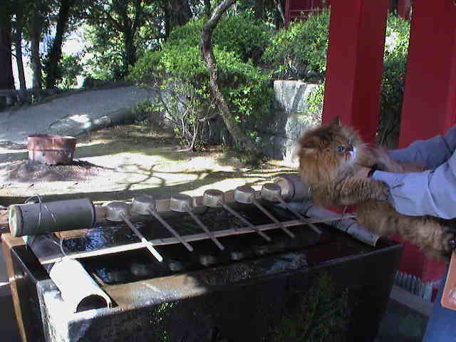 ルソー「何するんだ!手水舎で行水させる気なのか? 禊なら、ドライヤーを持って来てくれ」 |