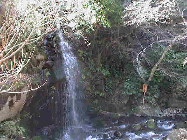 2004年3月29日(日)晴れ 熱海からの帰り道。ちょっと足を伸ばして湯河原へ。 ここ万葉公園は、温泉街を流れる千歳川の渓流沿いにある散策スポット。 トンネル入り口を抜けると、滝があり、マイナスイオンがいっぱい。 |