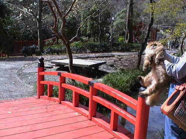 ルソー「あれ?昨日も渡ったよね、太鼓橋。気のせいかなぁ」 観光地に太鼓橋はつきものです。 |