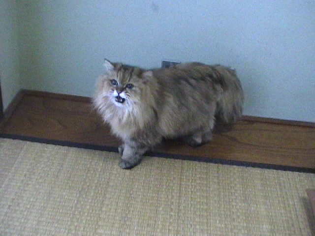 ルソー「とりあえず、ボクたちの食事とお水は、ここに置いてね。ポチ犬おにーさんは、イビキがうるさいから、この和室で寝るといい。ボクたちは洋室。いやぁ〜それにしても、外の雨、すごかったね。普段のボクなら、高速を走っている時でも眠れるんだけど、雨音がうるさくて、耳を倒してたよ。洗車機に2時間入っていたみたいだね。疲れた」 |