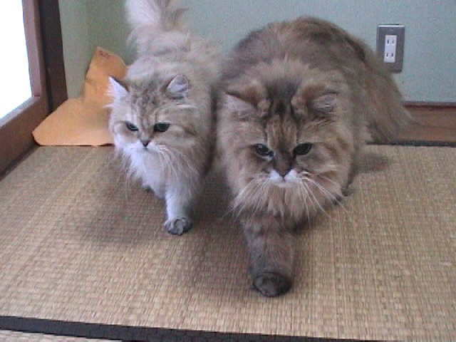 にもかかわらず、元気に動き回る2匹。 ルソー(右)「よし。探索活動開始だ!」 モネ(左)「アイアイサー!」 |