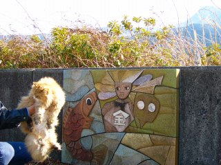 シャガール「ここが見晴らし広場か? お天気の良い日は、本当に見晴らしがいいね。壁画の金太郎さんにも注目してよ。まさかり担いでるんだから」 |