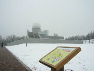 2005年4月4日(月) 雪 横浜ではポカポカ陽気だったのに、富士吉田は雪が降る寒さ。道の駅「富士吉田」に寄るついでに、隣の「富士山レーダードーム館」をのぞいてみました。 |