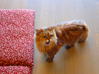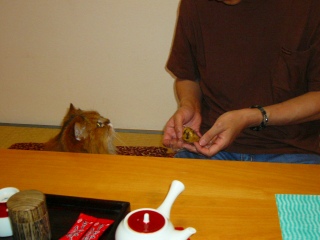 ルソー「えっ? 今回は旅猫始まって以来の、親子3匹旅なのに、食事を持参するのを忘れたって?! 信じられん! いつもの処方食はともかく、プレミアムフードを見つけるのに苦労したって? くんくん。このおまんじゅうで、ボクたちをごまかそうとしてもダメだ! 以後、気を付けるように」 |