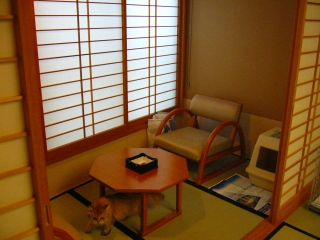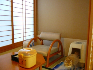 モネ「ちょっと一休みしようかしら。こっちのお部屋は4畳。眺めが悪すぎるから、窓の障子を開けない方がいいわ。お布団敷きの時は、ここで待機しようっと。この狭さが落ち着くのよ」 |