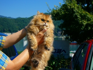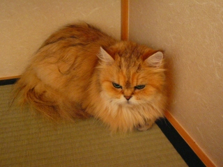 モネ「私、まだ帰りたくない」 今は亡き旅猫ルソーと同じように、帰り際にダダをこねるモネ。何だか、このイヤ〜な表情は、ルソーが乗り移ったみたいです。 |