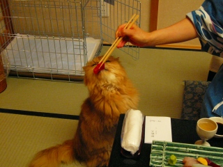 | 旅猫オススメ指数 人 72% ・・・ エレベータ横の部屋だったので、子供が走りまわる声で目覚めました。 猫 95% ・・・ 部屋の作りが猫向きでした。お刺身の量は少なかったけれど。 |