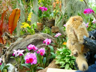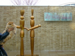 入園券を買ってしまったので、入るしかありません。ペットはキャリーに入れた状態で入園できます。 シャガール「仕方ないなぁ。ポーズをとるぞ。入口にあるブロンズ像は、花の王と妃なのかぁ。ボクのゴールデンの毛色と、よく合うでしょう」 |
