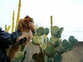 ルソー「サボテンランドを思い出すなぁ。どことなく、ボクに似ている金鯱。サボテンの女王だよ。ボクは猫の王様?」 |
