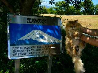 クロード「おいしい足柄の水。飲料水のほか、お茶やコーヒーにもどうぞ、か。残念だけど、今日はもう、富士吉田で水を汲んだから、遠慮するよ。重たいからね」 |