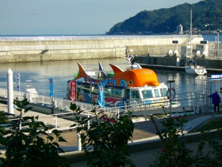 ペットも乗船できる、はるひら丸イルカ号です。 45分間の海中展望、なかなかおもしろそうですが・・・ |