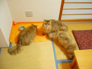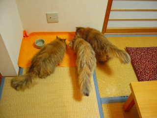 〜 待望のお刺身タイム 〜 シャガール(左)「ハグハグハグ」 モネ(中央)&クロード(右)「ああっ・・・」 |