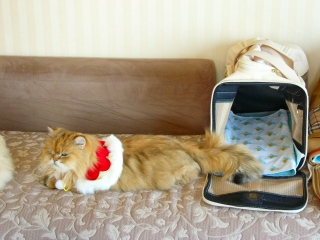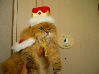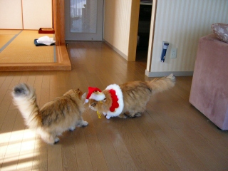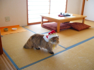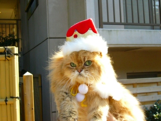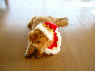 一夜明けて、11月22日(火) 晴れ シャガール「よし。チェックアウト前に、一仕事するか」 サンタさんの衣装を身にまとう、シャガール。 シャガール「王様みたいでしょ?」 |