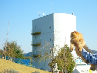 2005年11月22日(火) 晴れ クロード「後ろに見えるのは、松田山ハーブガーデンだよ。200種類、22,000本のハーブが栽培されているんだって。建物の周辺では、てんとう虫たちがサンバを踊っていたよ。 |