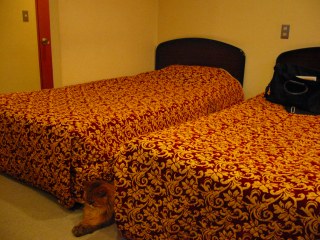 2月6日(日) 晴れ ルソー「さっそくお部屋のチェック開始だ。前回泊まったお部屋と違うな。ベッドが2つ並んでいる」 |