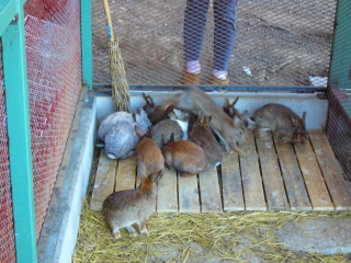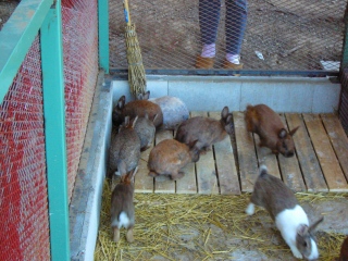 若ウサギ一同「何か、ちょうだ〜い」 フロントで渡される、紙コップ一杯の野菜クズでは、とてもとても・・・ |