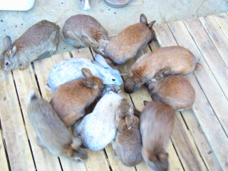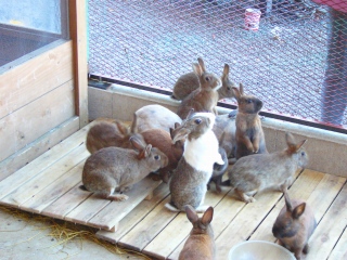 〜 一夜明けて、若ウサギの群れ 〜 12月19日(月) 晴れ ホテルで飼育されているウサギさんたちは、生後3〜4ヶ月といったところでしょうか。 |