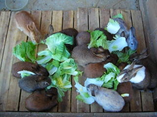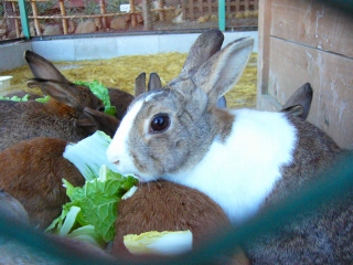 そこへ、調理場からキャベツが、ドドッと投げ入れられました。若ウサギ、大満足です。 |
